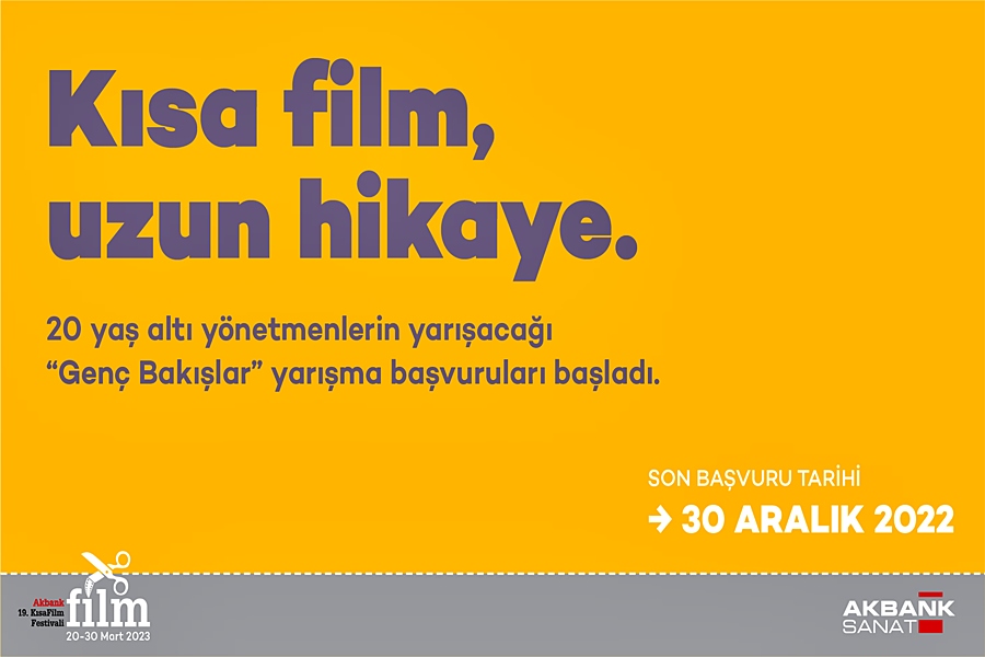 19. Akbank Kısa Film Festivali, “Festival Kısaları”, “Dünyadan Kısalar”, “Kısadan Uzuna”, “Deneyimler”, “Belgesel Sinema”, “Perspektif” “Özel Gösterim”, “Forum” ve “Genç Bakışlar” bölümleri ile yurt içi ve yurt dışından geniş katılımlı atölye çalışmaları ve söyleşileriyle 20-30 Mart 2023 tarihleri arasında sinemaseverlere keyifle izleyecekleri bir program sunacak. 19.Akbank Kısa Film Festivali yarışması başvuru formlarını, Akbank Sanat’tan ya da www.akbankkisafilmfestivali.com ve www.akbanksanat.com adreslerinden temin edilebilirsiniz.