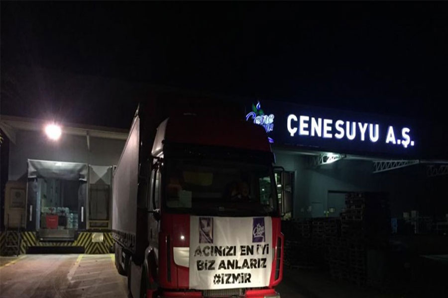 Türkiye’nin yardım için adeta seferber olduğu İzmir depremi için Derince Belediyesi iştiraki Çenesuyu da katkı sağlamaya devam ediyor. Toplumsal konulardaki hassasiyetiyle bilinen Derince Belediye Başkanı Zeki Aygün’ün talimatıyla Çenesuyu A.Ş.’de hazırlanan sular yardım tırlarıyla birlikte deprem bölgesine gönderildi. Devletimizin tüm imkanlarıyla deprem bölgesinde adeta seferber olduğunu belirten Başkan Aygün, yaptığı açıklama duyarlı vatandaşları yardım kampanyasına katkı sunmaya davet etti. Konuyla ilgili sosyal medya hesaplarından mesaj yayımlayan Başkanı Aygün, “Gün Birlik Olma, Dayanışma Günü. Kızılay ile birlikte düzenlediğimiz yardım kampanyamıza katkılarınızı beklerken Çenesuyu’ndan hazırladığımız su dolu tırlarımızı deprem bölgesine dualarla yolcu ettik. Rabbim, katkıda bulunan herkesten razı olsun” dedi.