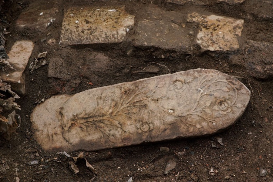 Eyüpsultan’da yapılan kazılarda kaldırımın altında zamana direnemeyen eski dergâh binasının kalıntıları ve tarihi mezar taşları çıktı.