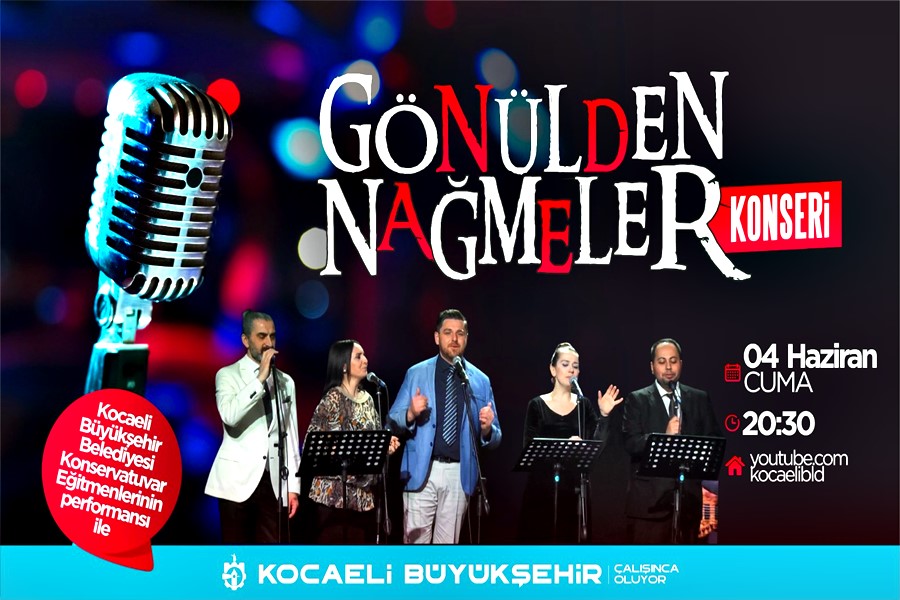 Kocaeli Büyükşehir Belediyesi Kültür Sanat ve Konservatuvar Şube Müdürlüğü, pandemi döneminde gerçekleştirdiği ve büyük beğeni gören konserlerine devam ediyor. Konservatuvar Şube Müdürlüğü eğitmenleri şimdi de Türk Sanat Müziği’nin en sevilen şarkılarını seslendirecek. “Gönülden Nağmeler” konseri 4 Haziran Cuma akşamı youtube üzerinden yayınlanacak.