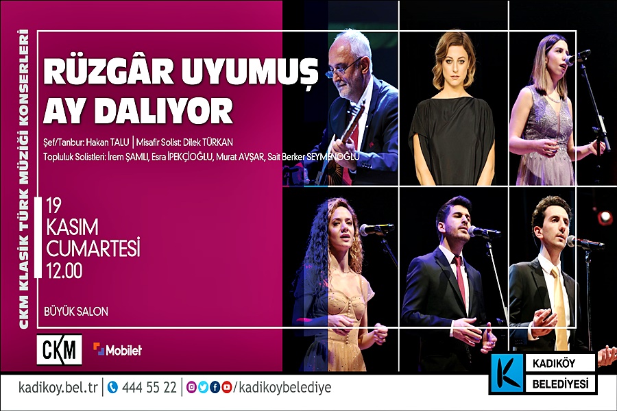 Şan Sineması yıllar önce üstad Münir Nurettin Selçuk’un yönetiminde Klasik Türk Müziği Konserleri’ne ev sahipliği yaptı. Büyük ilgi gören bu konserler dizisi geleneği Kadıköy Belediyesi Caddebostan Kültür Merkezi’nde yeniden hayat buluyor. Serinin İlk konseri “Rüzgâr Uyumuş Ay Dalıyor” adıyla 19 Kasım Cumartesi günü saat 12.00’de gerçekleşecek. Tanbur sanatçısı Hakan Talu’nun şefliğinde devam edecek serinin ilk konuk solisti Klasik Türk müziği ve Tango yorumcusu Dilek Türkan olacak. Yıllarca TRT İstanbul ve Ankara radyolarında da program yapan sanatçıya koristler İrem Şamlı, Esra İpekoğlu, Murat Avşar ve Sait Berker Seymenoğlu sahnede eşlik edecek. Hakan Talu yönetiminde dört ses ve altı saz sanatçısından oluşan topluluk her konserinde bir misafir solist ağırlayacak. Konserlerin biletleri online bilet satış mağazalarında.