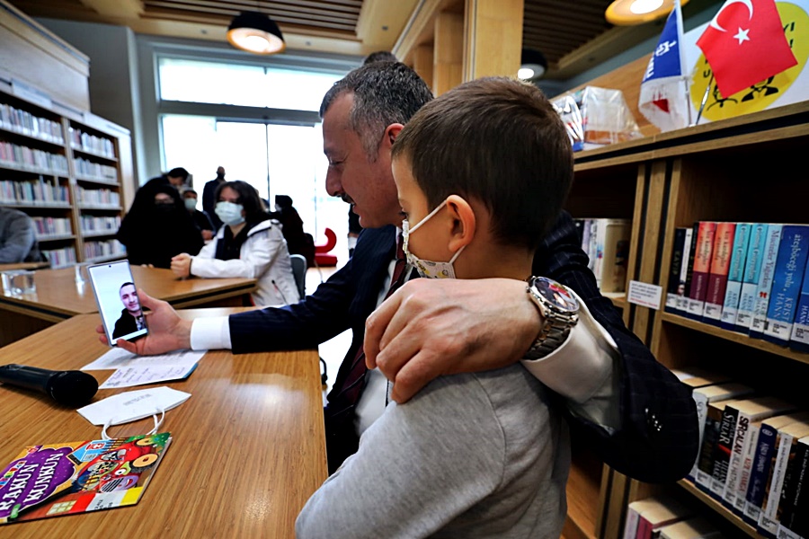 Başkan Doç. Dr. Tahir Büyükakın, bu arada en fazla kitap okuyanlar arasında yer alan ancak vatani görevi dolayısıyla Kütahya’da bulunan er Selami Meydan ile görüntülü telefon bağlantısı gerçekleştirdi. Mehmetçiğimizi okumaya olan ilgisi nedeniyle tebrik eden Başkan Doç. Dr. Tahir Büyükakın, kendisinden bir talebi olup olmadığını sordu. Er Selami Meydan ise kendisini unutmadığı için Başkan Doç. Dr. Büyükakın’a teşekkür etti. Başkan Doç. Dr. Büyükakın, görüşmeyi sonlandırmadan önce ise, “Orada vatani görevini yapan tüm Mehmetçiklerimize, komutanlarımıza selamlarımı iletiyorum. Birliğinizden talep olması durumunda oraya bir kütüphane yapabiliriz” müjdesini verdi.