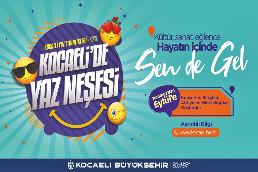 Kocaeli Büyükşehir Belediyesi yaz aylarında kentin 12 ilçesinde bir dizi kültür ve sanat etkinliği düzenleyecek. Kültür, sanat eğlence hayatın içinde olacak. Temmuz, Ağustos ve Eylül aylarına damgasını vuracak olan etkinlikler kapsamında yerel ve ünlü sanatçıların katılacağı konserler, çocuklar için tiyatro ve bilim gösterileri, sokak eğlenceleri, sergiler, atölye çalışmaları ve sanatsal faaliyetler gerçekleştirilecek. Etkinlikler; ilçelerin park, bahçe ve kültür alanlarında yapılacak.