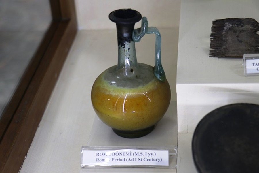 Malatya’nın Darende ilçesi bulunan Maşattepe timülüsü kazısı sırasında ortaya çıkarılan ve içerisinde halen zeytinyağı tortusu bulunan 2 bin yıllık cam yağdanlık ziyaretçilerin ilgisini çekiyor.