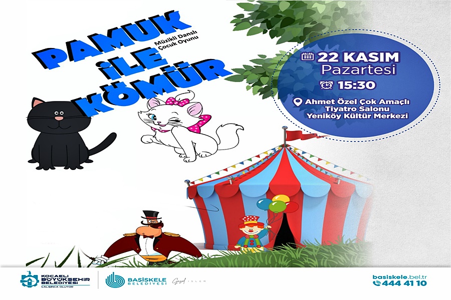 Başiskele’de çocukların fiziksel, ruhsal ve zihinsel gelişimlerine büyük önem veren Başiskele Belediyesi, “Pamuk ile Kömür” adlı müzikal çocuk tiyatro oyununu miniklerle buluşturuyor. Kocaeli Büyükşehir Belediyesi etkinlik takvimi programı kapsamında, Yeniköy Kültür Merkezi Ahmet Özel Çok Amaçlı Tiyatro Salonu’nda 22 Kasım Pazartesi günü saat 15.30’da başlayacak Pamuk ile Kömür Tiyatrosu oyununa tüm Başiskeleli çocuklar ücretsiz katılabilecek.